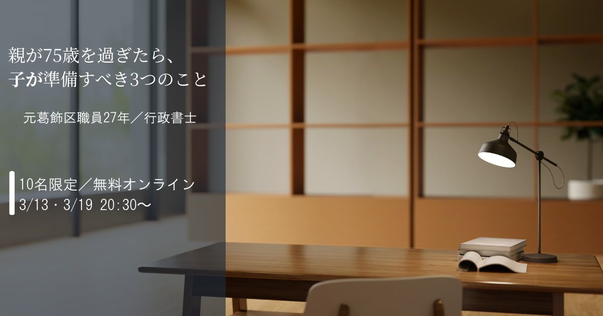 【10名限定】親が75歳を過ぎたら、子が準備すべき3つのこと